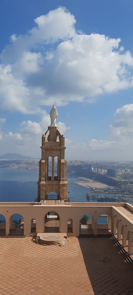 Oran kaldığım şehre yakın olduğu için 3 kere ziyaret etme fırsatım oldu. Sanayisinin yanı sıra kültür, sanat ve eğitim açısından da önemli bir kent. Santa Cruz, Le Théâtre d’Oran, La Cathédrale du Sacré Coeur, Marché Medina Jedida, Place du er Novembre turist çeken, görülmesi gereken yerlerinden. Camus bu şehir için dingin görünümlü, canınızın sıkılacağı bir şehir şeklinde nitelemeler kullansa da oraya gidince gördüm ki Cezayir’in en hareketli şehirlerinden biri hatta şehri diyebilirim. Orada yaşayan Türkler, Oran için Türkiye’nin İzmir’i gibi diyor. Değerlendirmesini siz yapın. Benim ilk uğradığım yer, tepesindeki görkemli Meryem Ana heykeli ve deniz manzarasının kavuşumuyla eşsiz bir görüntüye sahip Santa Cruz oldu.