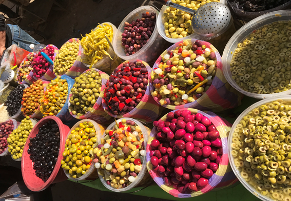 Oran da tramvay ağı gelişmiş. Gitmek istediğiniz çoğu yere tramvay aracılığıyla gidebilirsiniz. Bizim bir sonraki uğrak yerimiz Oran’ın merkezi denilen Place du er Novembre oluyor. Bu meydanda birkaç fotoğraf çekindikten sonra tramvayla Medine-i Cedid’e geçiyoruz. Medine-i Cediden büyük ve en meşhur pazarı. Cuma günü hariç her gün açık. Gıda, yiyecek, ev eşyasına varana kadar el emeği her ürünü bulmanız mümkün. Çeşit çeşit zeytinler ve hurmalar var. Biraz kalabalık oluyor. O yüzden dikkat etmemiz gerektiği konusunda bizi uyarmışlardı.